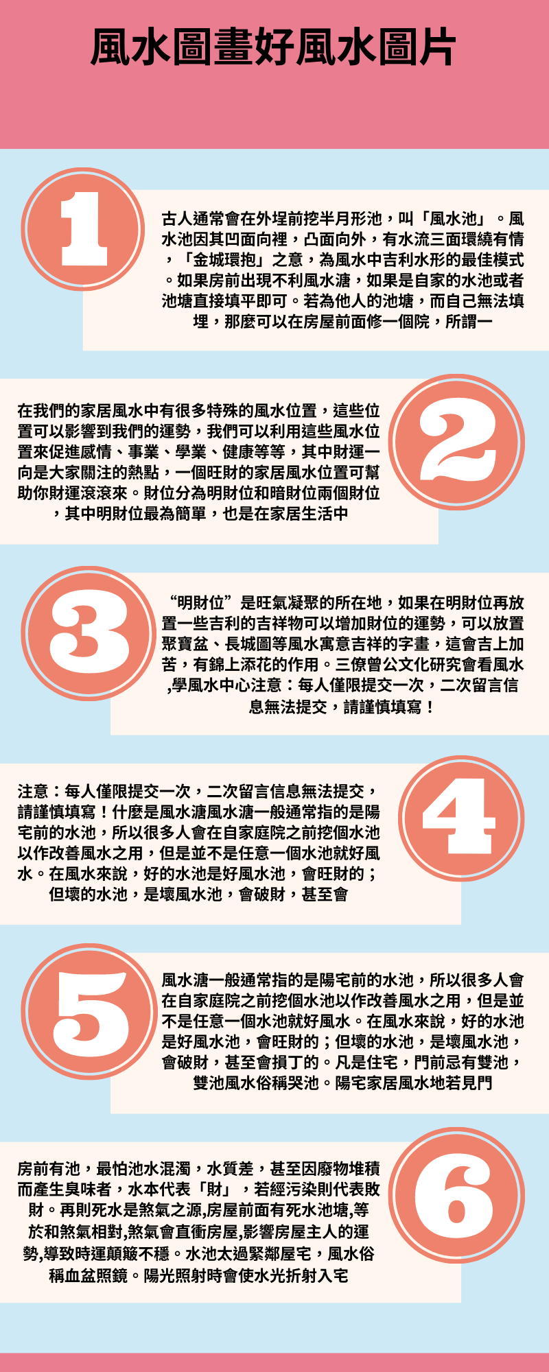 什麼是風水溏風水溏指是陽宅前水池,所以很多人會自家庭院之前挖個水池作改善風水之用,但是並不是任意一個水池風水。風水,水池是風水池,會財;但水池,是風水池,會破財,會損丁。房前風水溏忌有雙池住宅,門前忌有雙池,雙池風水俗稱哭池。陽宅家居風水地若見門前有兩口池塘,那是這明堂上為人啼哭,這會令人家多疾病,要惹上禍事瘟疫及火災。左右前方各有一池塘,那「龍、虎腳上池,定無凝」,此形煞主淫。房前風水溏忌西頭有池房前西頭有池風水,風水俗稱白虎開口。白虎開口易招官口舌和血光災,破財敗業,家中婦女患婦科疾病,流產或患不育不孕症。房前風水溏忌池水房前有池,怕池水,水質差,廢物堆積而產生臭味者,水本代表「財」,若經污染則代表敗財。再則死水是煞氣之源,房屋前面有死水池塘,於和煞氣,煞氣會衝房屋,影響房屋主人運勢,導致時運顛簸。房前風水溏忌水池緊鄰屋宅水池過鄰屋宅,風水俗稱血盆照鏡。陽光照射時會使水光折射入宅者,導致精神恍惚兼桃花帶煞,遇有強光水面折射入宅內天花板時,宜以蓮花遍佈池塘表面防止水光折射,並窗戶設置檔光窗簾遮檔。房前風水溏應為離門處開挖半月形池塘古人會在外埕前挖半月形池,叫「風水池」。風水池其凹面裡,凸面向外,有水流三面環繞有情,「金城環抱」意,風水中吉利水形最佳模式。房前風水溏應該如何化解如果房前出現風水溏,如果是自家水池或者池塘直接填平。若為他人池塘,而自己無法填埋,那麼可以房屋前面修一個院,所謂一牆隔百煞,這樣可以化解煞氣;或者面向死水池塘方位懸掛麒麟山海鎮來化解,麒麟山海鎮可改變這種風水氣場。麒麟乃是風水鎮宅、化煞轉禍為祥之神獸。麒麟不但能招財,能化解煞氣。麒麟山海鎮不僅擁有見山海鎮化煞功能外,有回頭護主麒麟一對;同時麒麟鎮煞符加持,可趨吉避凶、移兇轉吉。麒麟山海鎮於單麒麟無山海及符咒加持山海鎮;麒麟與山海鎮相輔,超強化煞。麒麟山海鎮線推薦:微信線請購,信號:xmbwsm商城線請購:點擊處進入商城線諮詢:電話:15759272896,信號:xmbwsm