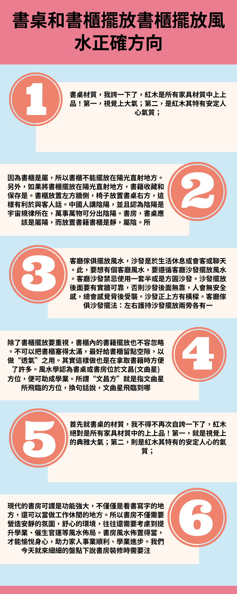 可是,如果書房風水犯了這五大禁忌,不僅於學習,會居住者運勢造成影響。氣場上犯沖人是,出現事,使人注意力集中,無法學習;同時書桌背門,是調整書桌位置,或者書桌上放一套五帝銅錢來進行化解。