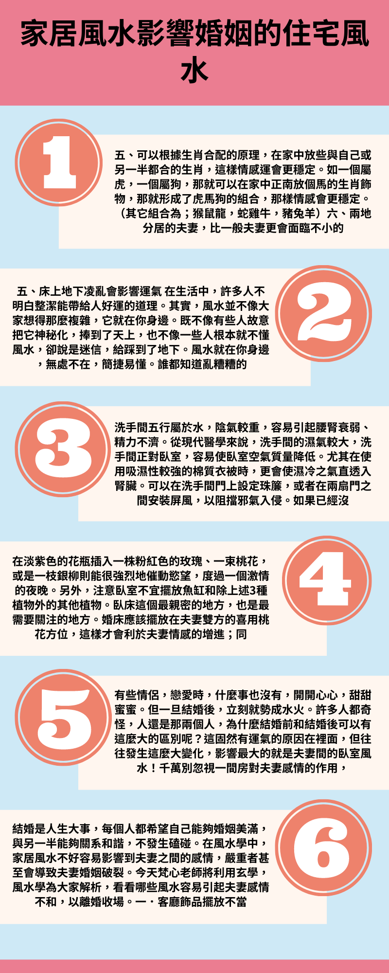 今天風水學角度來講一下,如何調整風水,包括臥房風水、生肖原理,讓自己伴侶之間感情可以、順利一些。以下八件事做好了,可以為自己婚姻營造一個風水環境。