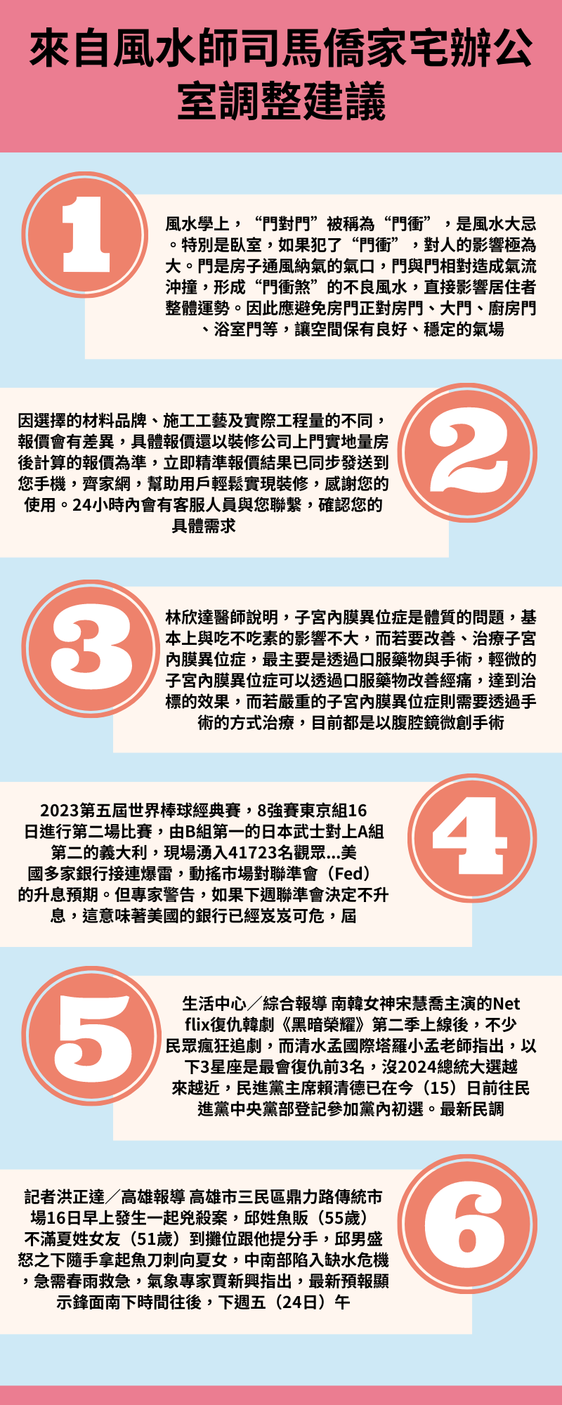 風水學上,“門門”稱為“門衝”,是風水大忌。是臥室,如果犯了“門衝”,人影響大。門是房子通風納氣氣口,門門造成氣流沖撞,形成“門衝煞”風水,直接影響居住者整體運勢。因此應避免房門房門、大門、廚房門、浴室門,讓空間保有、氣場,才能有利於懷孕及生育。