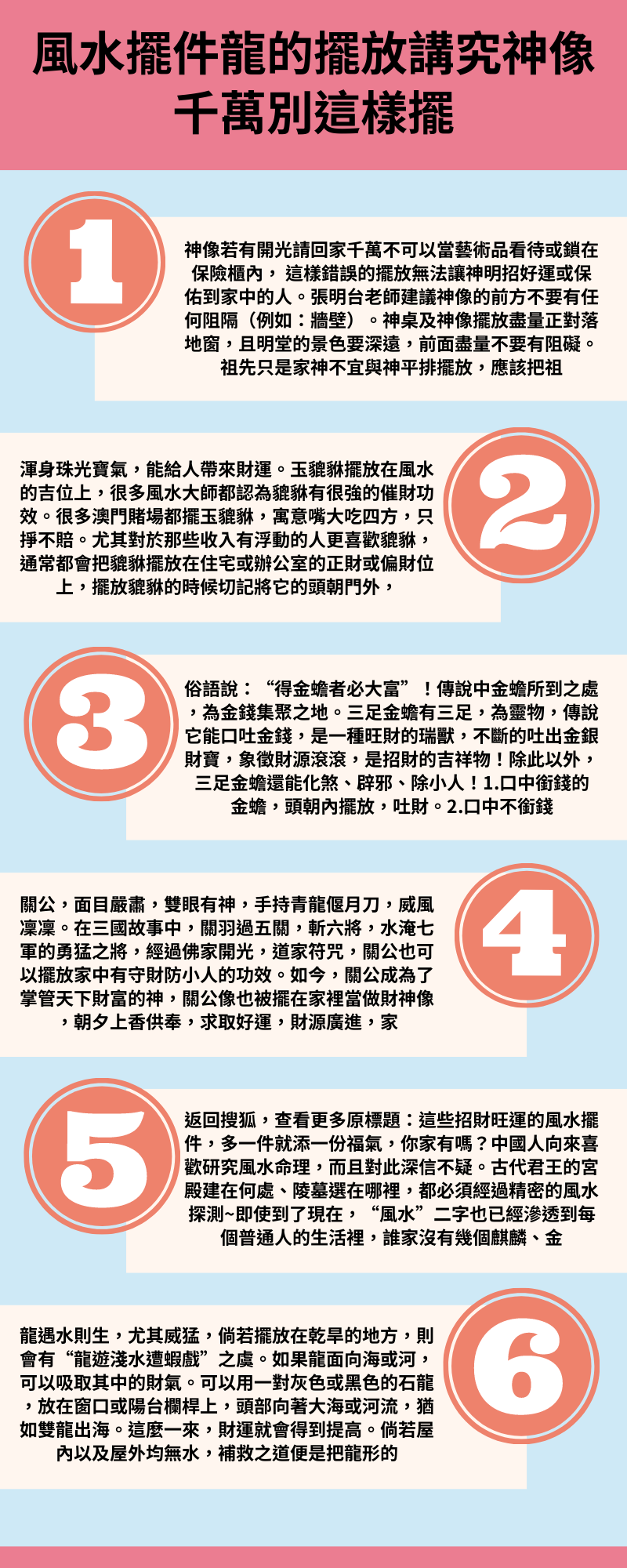 龍我國有著文化,中國人自稱“龍傳人”可見龍推崇。同時呢!風水學中龍可化解小人是非,貴人運勢,因此於上班一族是,而且我們可以龍形飾品擺放在辦公桌青龍位上,能夠起到事半功倍效果。