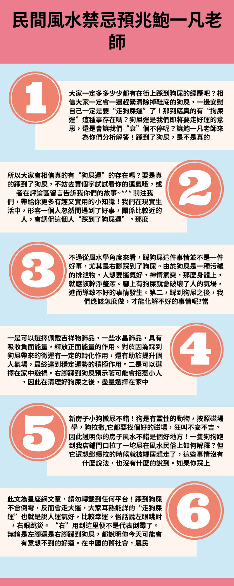 不過風水學角度,踩狗屎這件事情並不是一件好事,是右腳踩到了狗屎。於狗屎是一種排泄物,人想要運氣,神情,那麼身體上,應該幹淨整潔。腳上有狗屎會破壞了人氣場,進而導致事情發生。