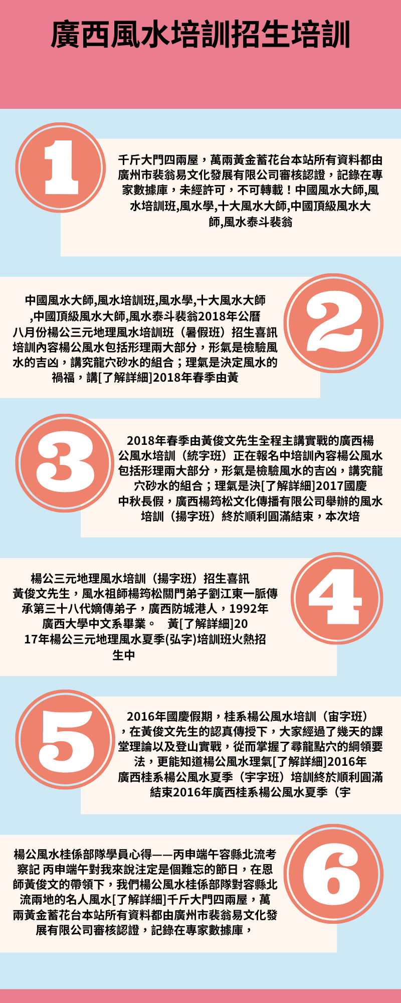 2017國慶中秋,廣西楊筠松文化傳播有限公司舉辦風水培訓(揚字班)終於順利圓滿結束,本次培訓課時總共用了八天時間,全程風水祖師楊筠松第三十八代弟子黃俊[了解詳細]