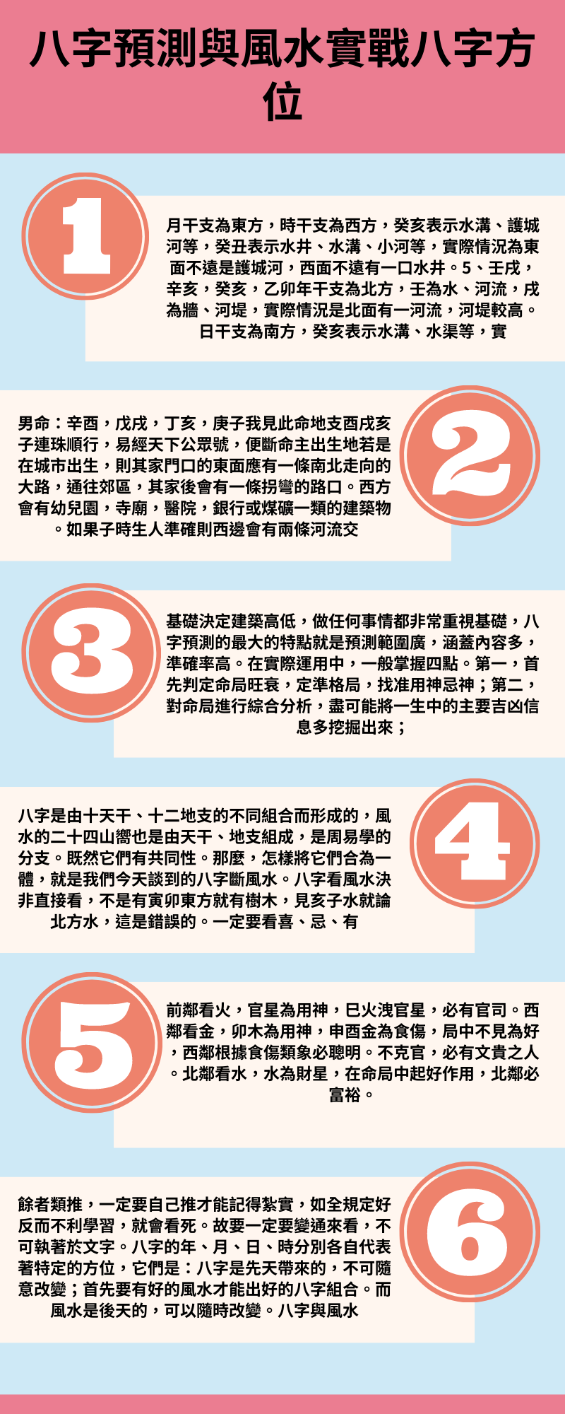 “八字方位”是八字風水術精髓,是八字風水預測一個核心內容。此公佈八字風水預測這一核心精髓,以便讓人人能驗證自己風水,科學角度來定論周易預測提供一種驗證方式。