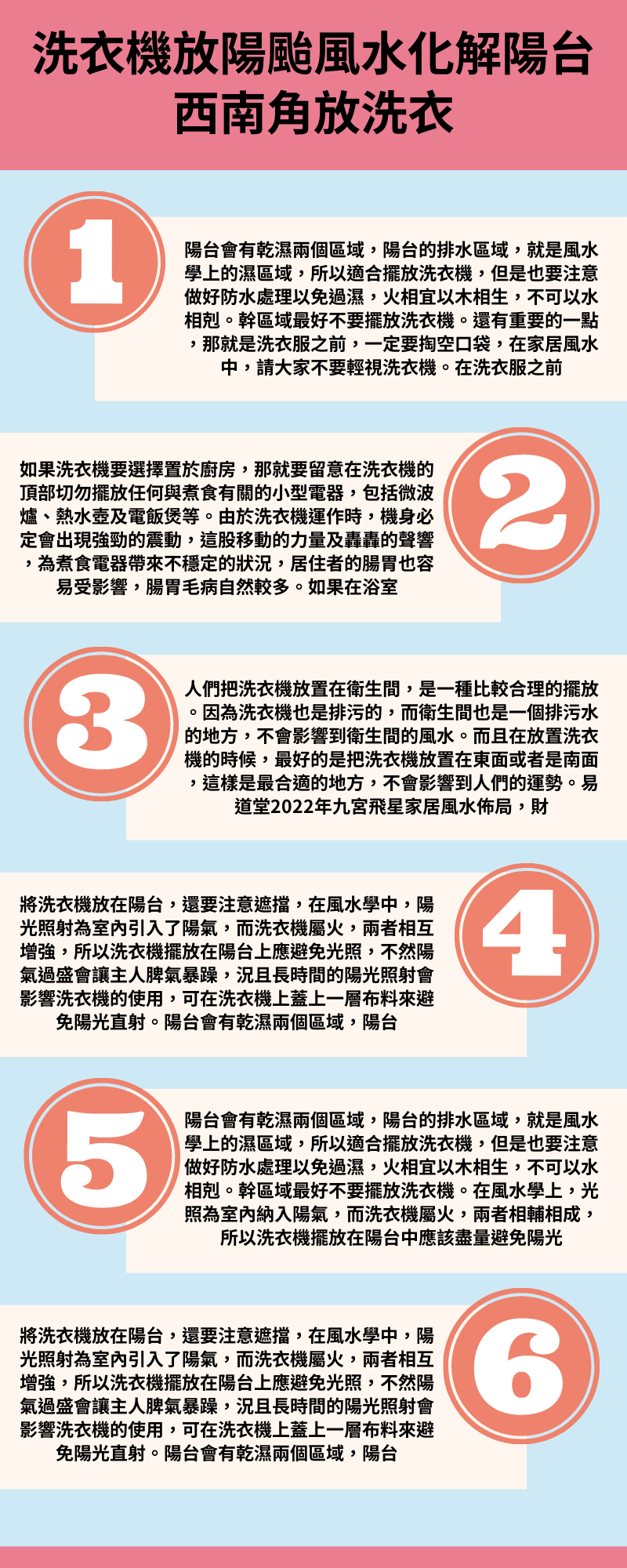 於居家環境面積問題,洗衣機只能擺放在陽台;那麼洗衣機放陽颱風水化解方法有哪些?很多家庭於住宅空間,家庭選擇洗衣機放在陽台上使用,如果放置方位,其會家運造成影響,那麼洗衣機放陽台要怎麼風水化解呢?一起看看下面陽颱風水諸多學術解答吧!