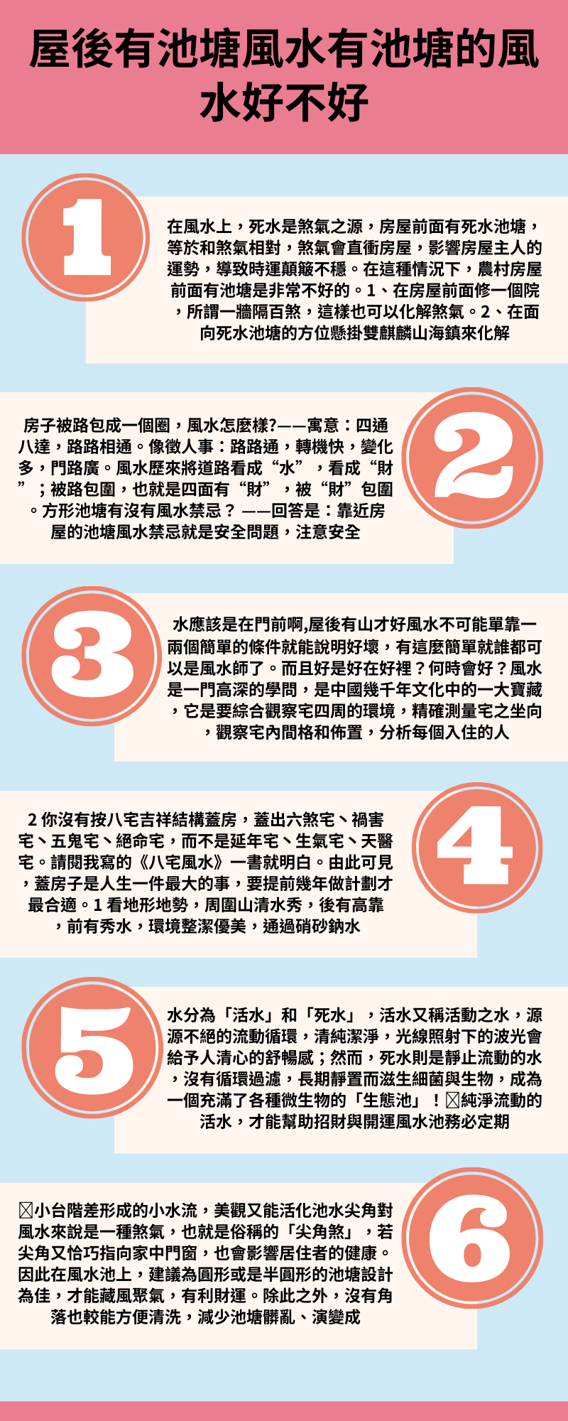 ,善待水池後果,風水上會有影響,以致於運勢低落。