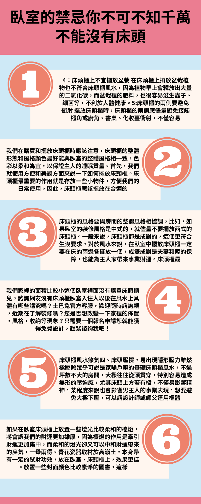 答床頭櫃是既可以裝飾,可以做儲存小物品,如果房間小,或者格局放,可以選擇不放,設計,風水上並沒有影響。  或者床頭位有一點點位置,