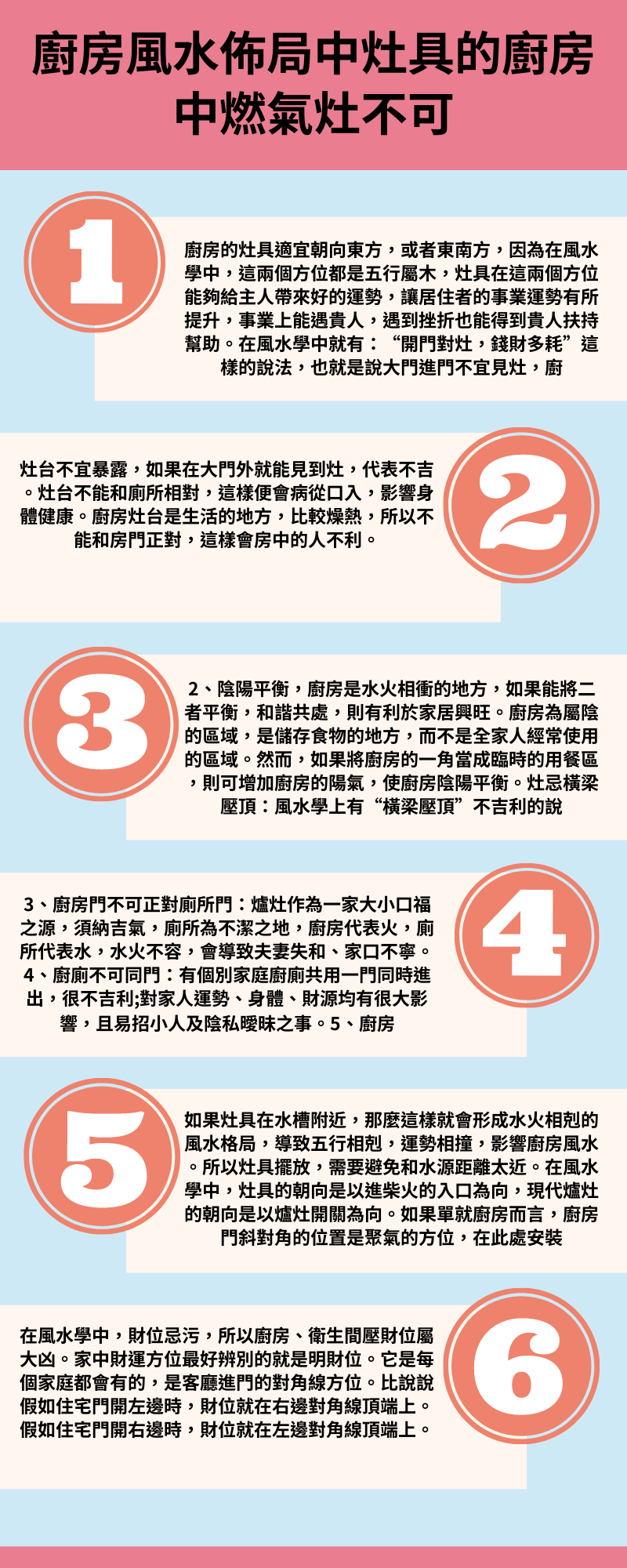 廚房灶台是生活地方,熱,所以不能和房門,這樣會房中人。