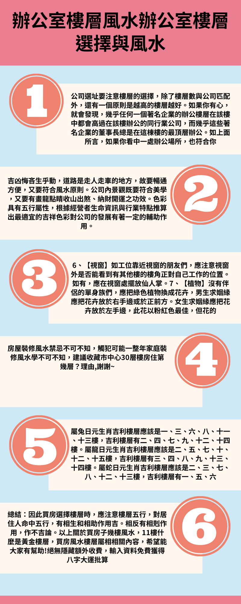 於寫字樓樓層選擇,內部環境和外部環境是一位,其次是辦公室負責人八字,然後是每個辦公人員八字,然後選擇吉祥程度樓層數。