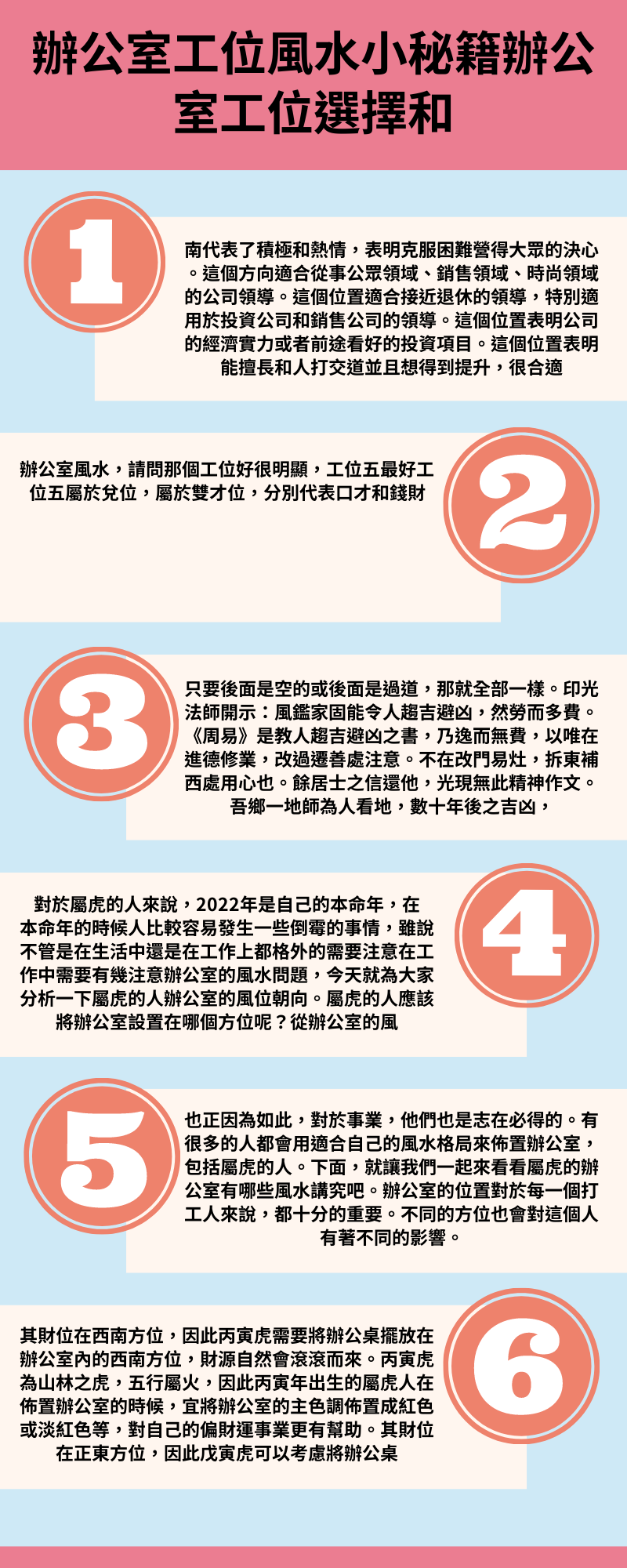 其財位正南方位,因此對壬寅年出生屬虎人而言,選擇自己辦公桌擺放在辦公室內正南方位是一個選擇,,若是可以選擇公司內位於正南方向辦公室會更佳。