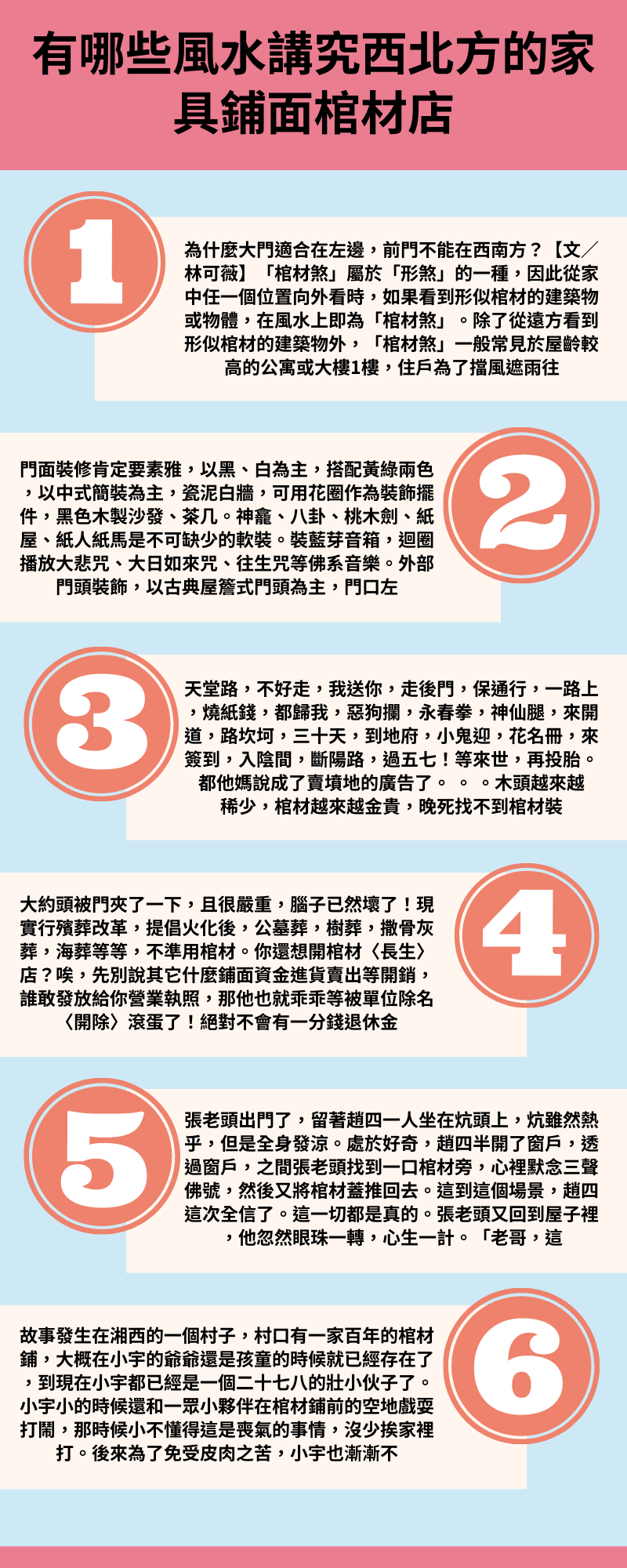 之外,謝沅瑾表示,若房子小心到「棺材煞」者,家中還發生怪事,或是看見奇怪現象,例如聽到奇怪聲音或人影,是感覺有人身旁跟著、晚上睡覺做怪夢,屋主或家人生想開。