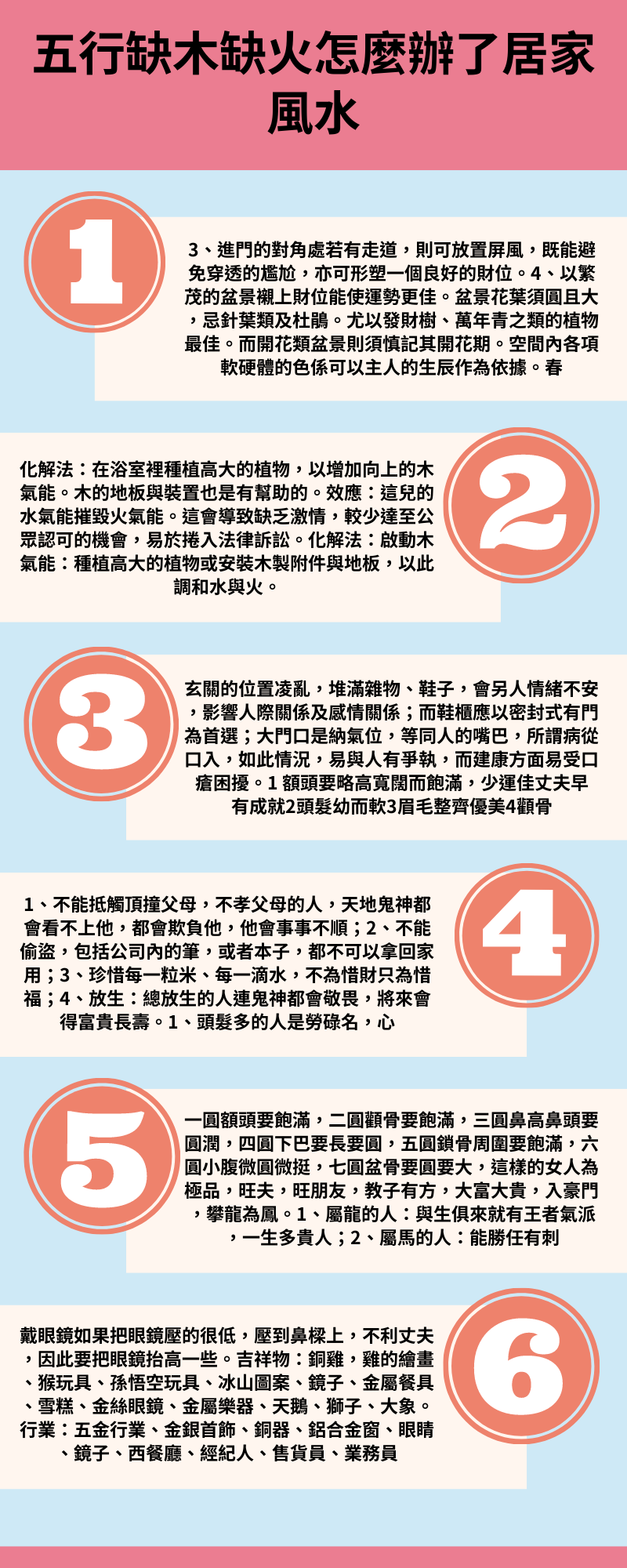 五行缺木適合住樓層是:三樓和八樓,因為三樓和八樓屬於東方,屬木。五行缺水適合住樓層是1樓,6樓,11樓,16樓,21樓,26樓,31樓,這些是屬水樓層。