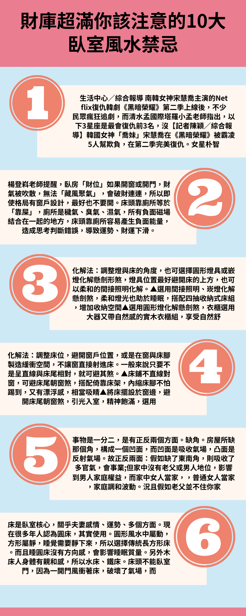 臥室是讓我們休息,養足精神空間,一個人臥室時間往往8時左右,房間磁場,會影響到身體及運勢,精神狀況,重則病魔纏身,破財!運風水命學老師楊登嵙提醒臥室有十大漏財風水禁忌,不可不知!