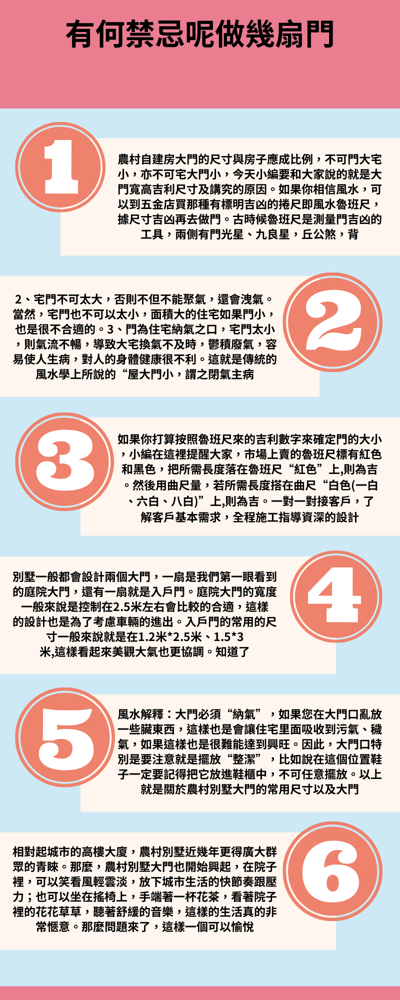 農村自建房大門尺寸與房子應成比例,不可門大宅,不可宅大門小,今天編要和大家說吉利尺寸及講究原因。如果你相信風水,可以到五金店買那種有標明吉凶捲尺即風水魯班尺,據尺寸吉凶去做門。