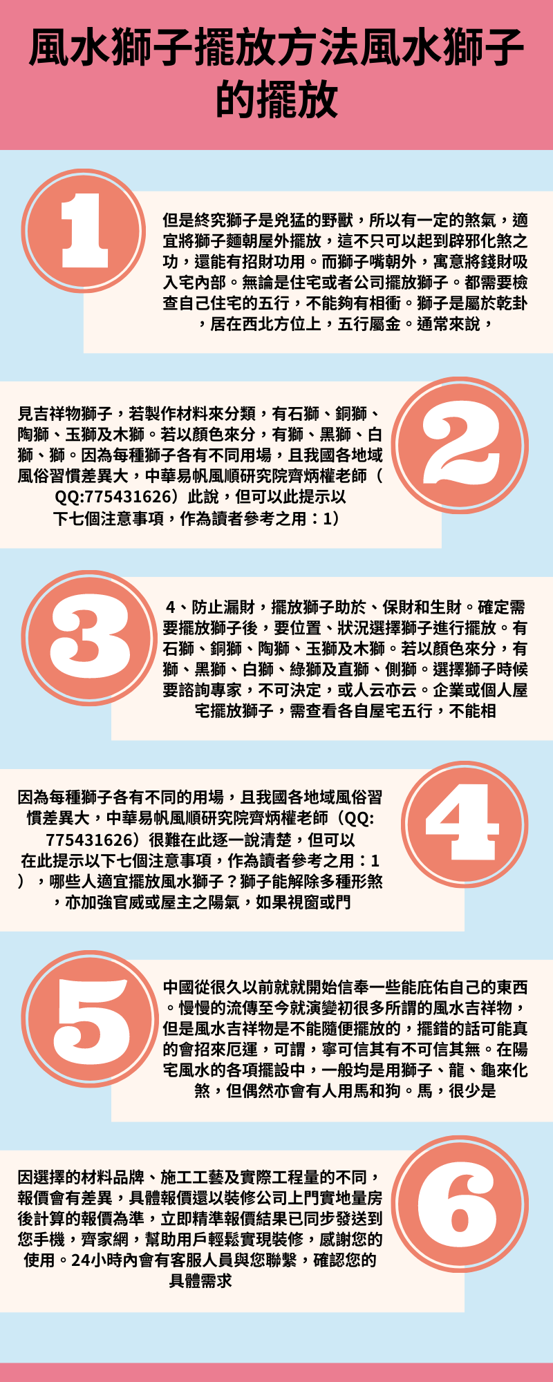 因為每種獅子各有不同用場,且我國各地域風俗習慣差異大,中華易帆風順研究院齊炳權老師(QQ:775431626)此說,但可以此提示以下七個注意事項,作為讀者參考之用: