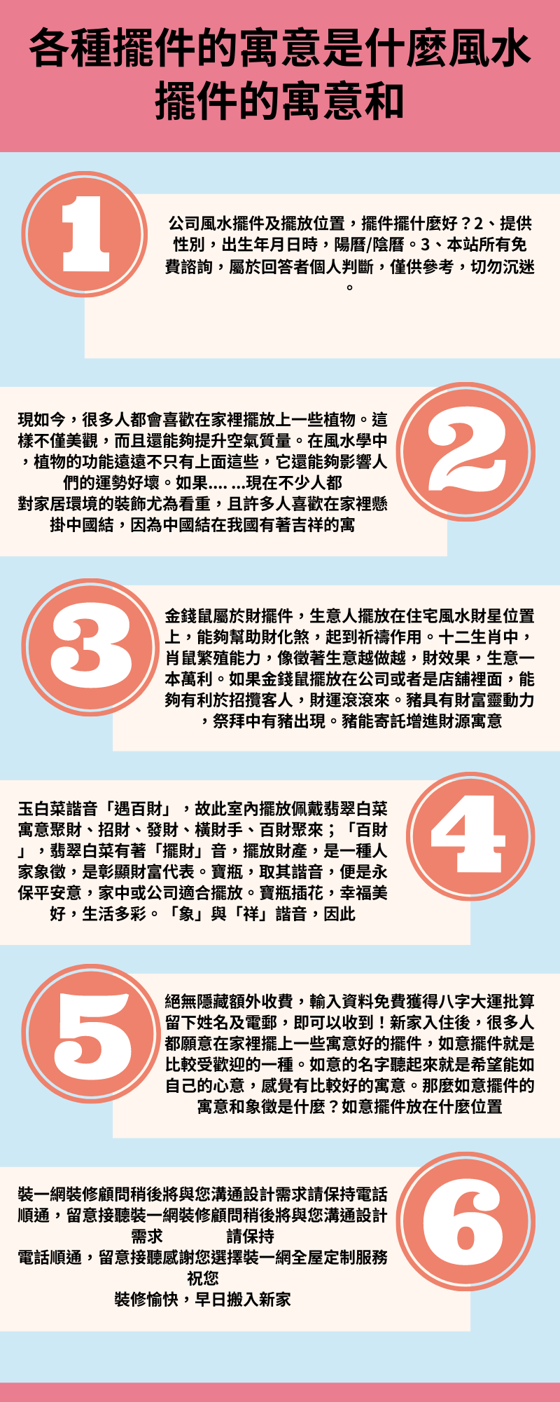 以上關於風水擺件寓意是什麼、風水擺件寓意和象徵內容。風水擺件種類,有寓意。