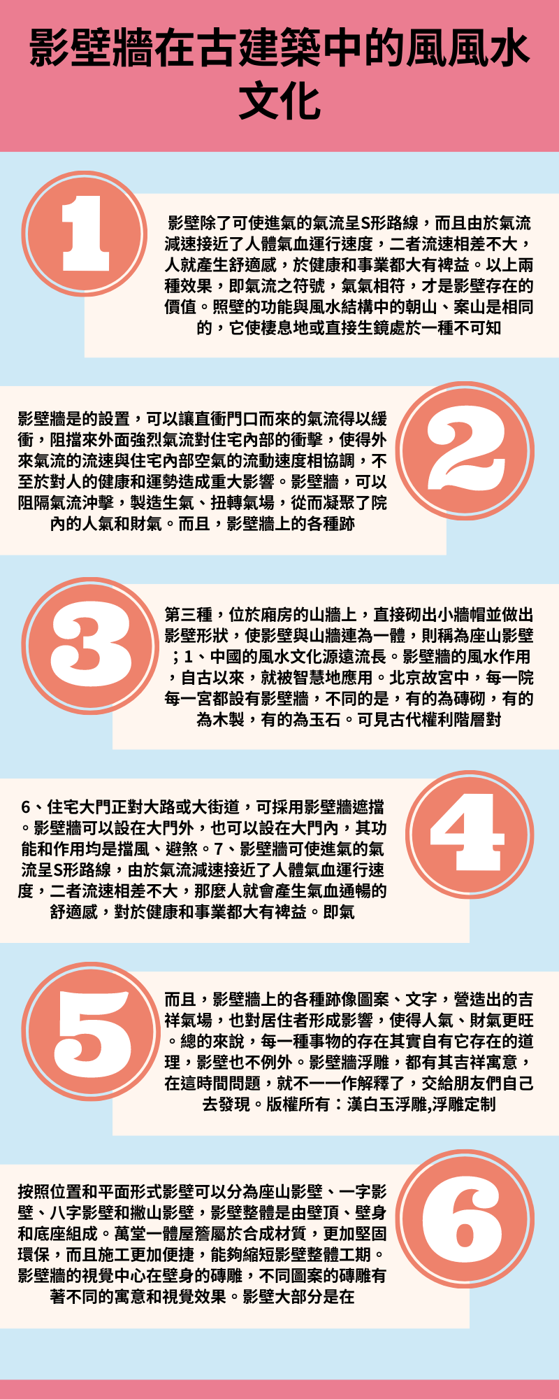 1、中國風水文化流長。影壁牆風水作用,以來,智慧地應用。北京故宮中,每一院每一宮設有影壁牆,是,有的磚砌,有的木製,有的玉石。可見古代權利階層於影壁牆重視。而且,故宮設計建造初,遍請風水大師參與設計。可見影壁牆有著不可覷風水作用。