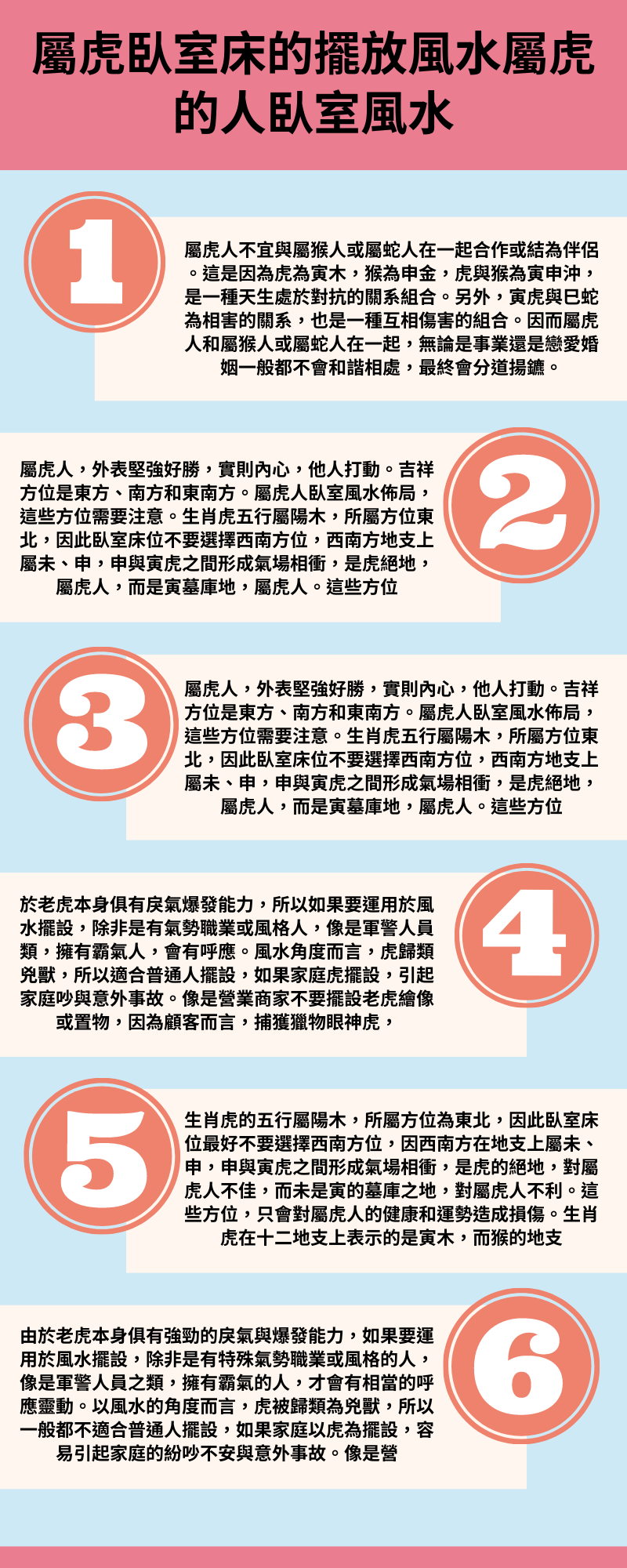 屬虎人臥室床位忌西南方,西南方地支中屬、申,屬地支寅,申衝屬,是虎絕地;同時是寅墓庫地,因此這個方位是。