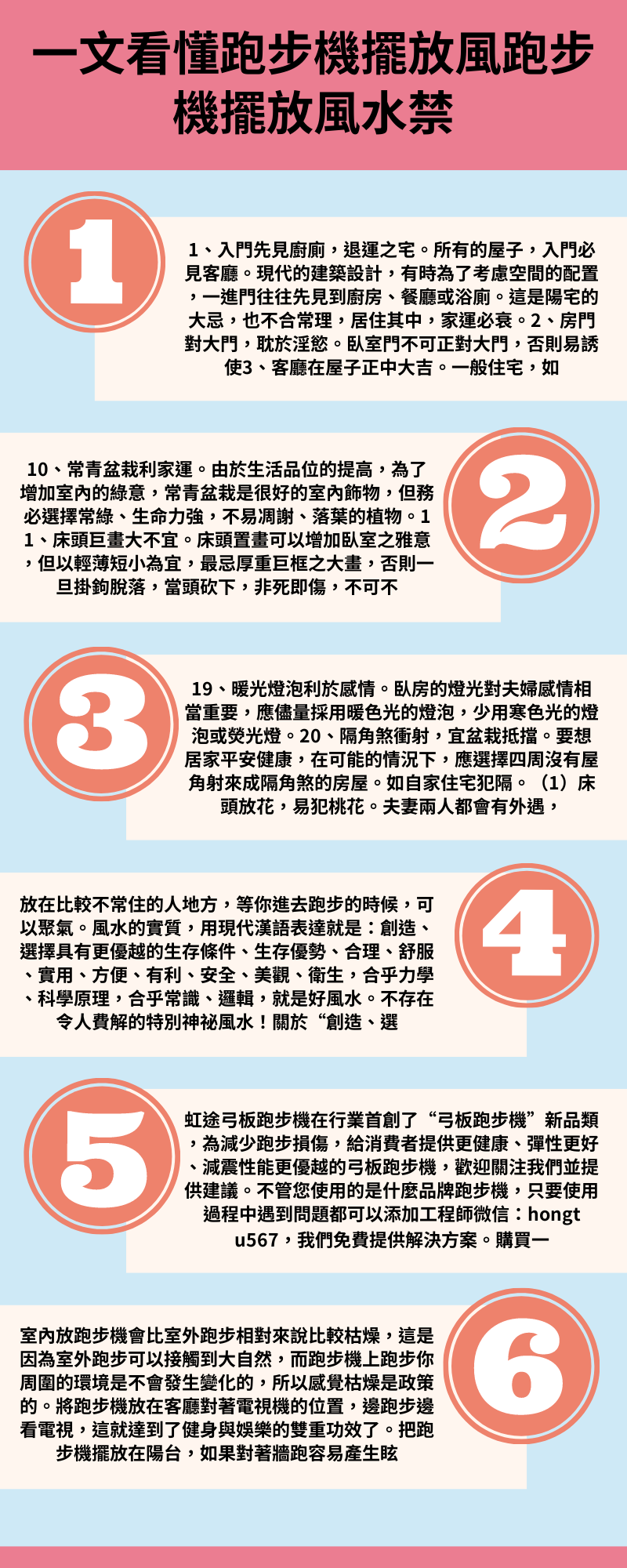 臥室和書房:放到臥室跑步機要么是蟲要么是可放了,可能會了一點,但是臥室和書房是一個需要休息和思考地方,放跑步機是適,因為跑步機散發聞味道於,跑步時候會產生噪音影響其他人休息,有懂風水說跑步機放在書房風水會變差。