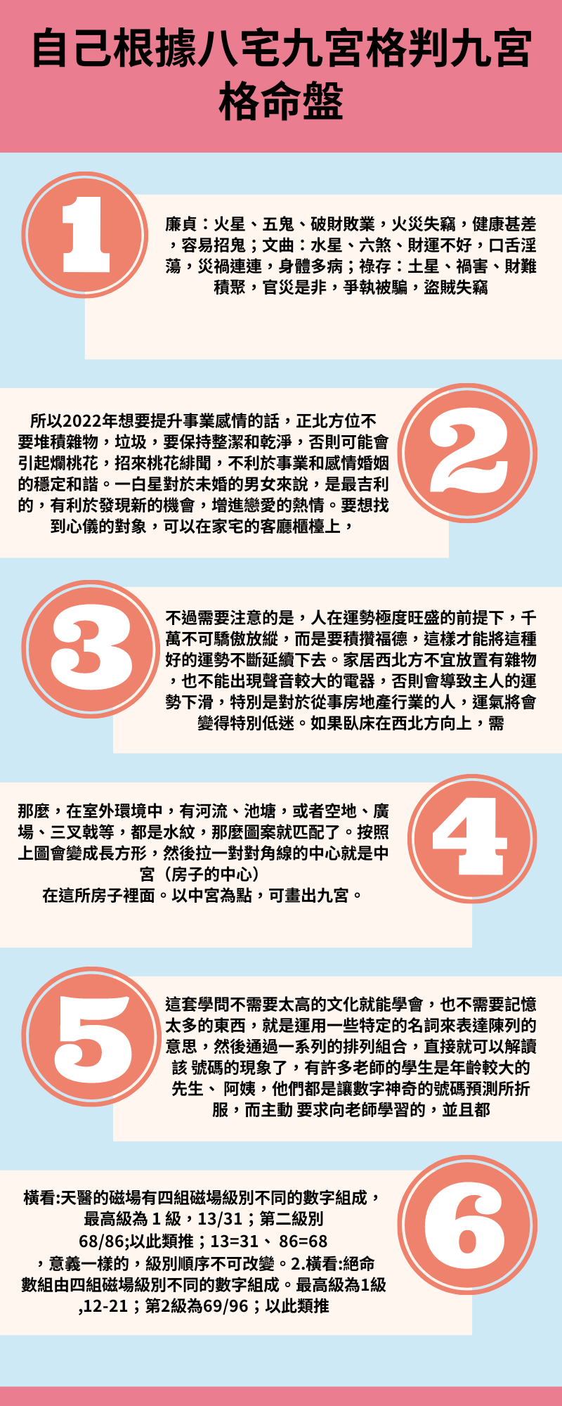 所以2022年想要提升事業感情話,正北方位不要堆積雜物,垃圾,要保持和乾,否則可能會引起爛桃花,招來桃花緋聞,於事業和感情婚姻和諧。一白星於未婚男女來說,是吉利,有利於發現機會,增進戀愛熱情。要想找到心儀對象,可以家宅客廳櫃檯上,擺放一張自己喜歡那種類型明星照,自己生辰八字擺放風水吉祥物,桃花運會起來。已婚家庭需要注意化解這種風水氣場,避免出現婚外戀。家中長女、年主婦。有孕婦家庭要注意保胎,未婚男女要避免未婚先孕事情發生。