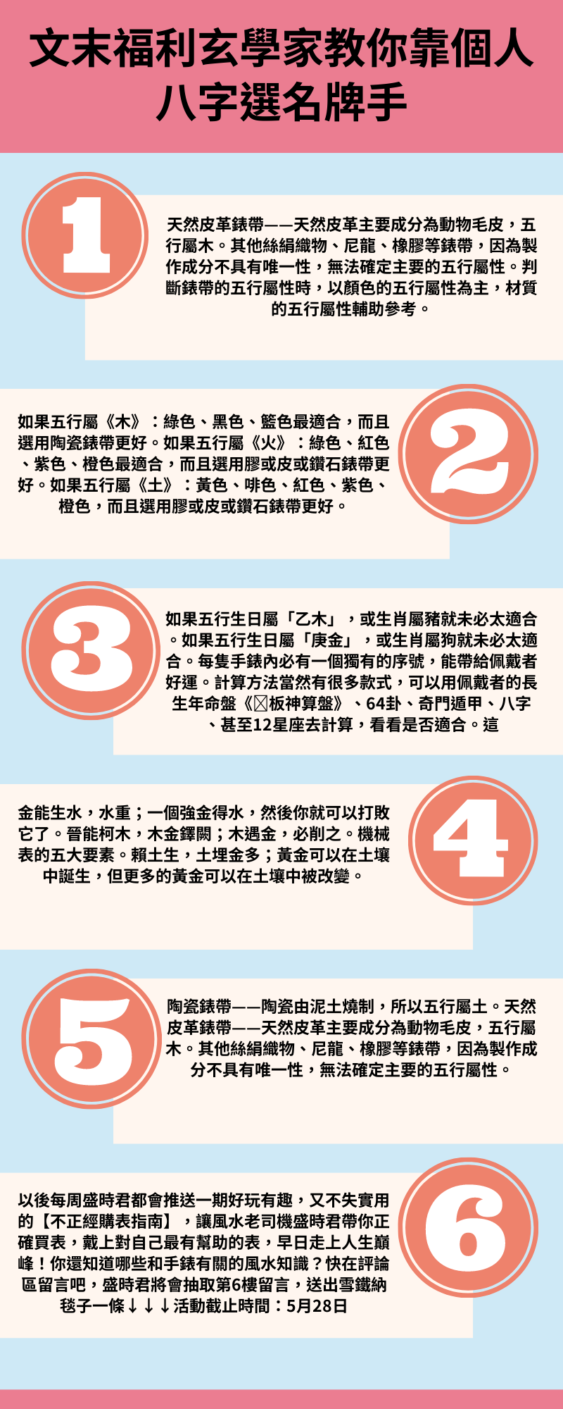 【五行克制,宜忌】一塊手錶具體五行是什麼。