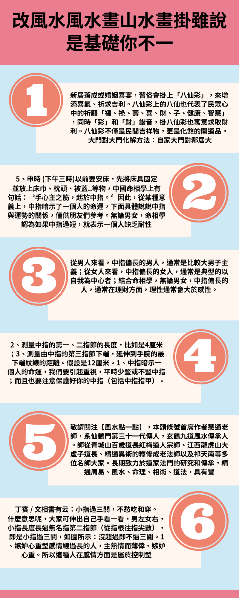 3、如果你事業財運、感情婚姻方面不盡人意。那麼,不僅你中指有關,你自身流年運勢有關,而且你〝窩〞有關。設你住了風水屋宅,或者風水辦公室上班,那麼,你天性處會於風水問題,而喪失殆盡了。