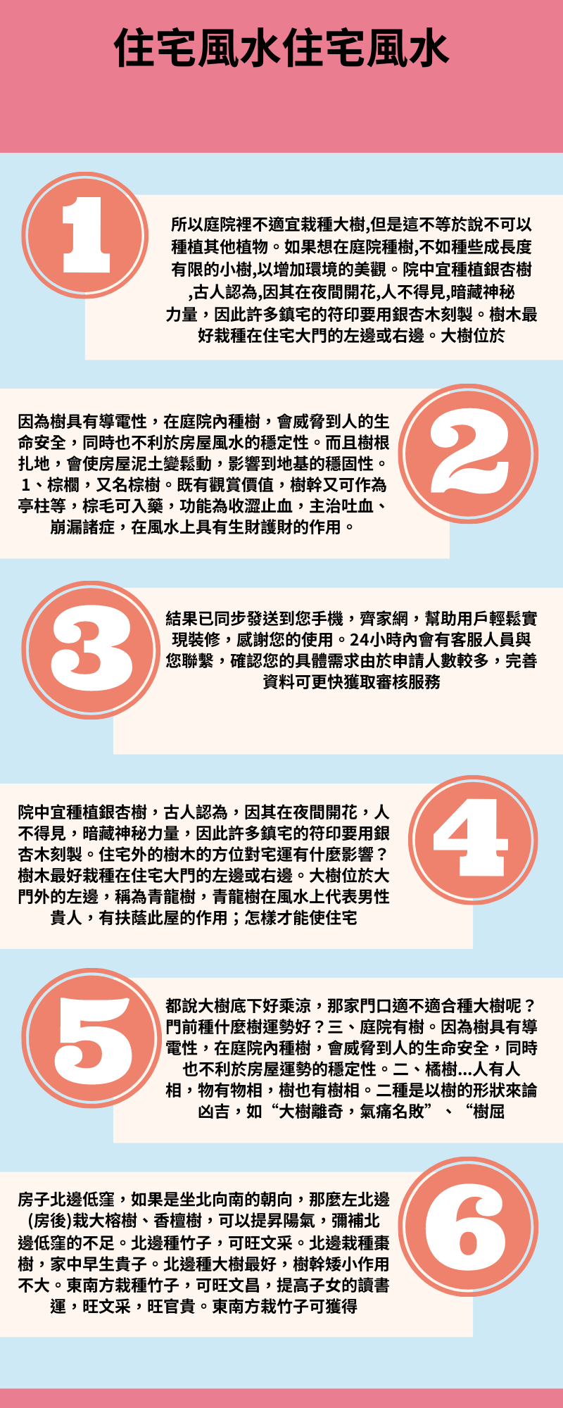 ②庭院中種植大樹,會影響通風,阻礙新鮮空氣住宅與庭院之間流通,導致室內濕氣和濁氣不能排除,使得住宅環境變得,於。