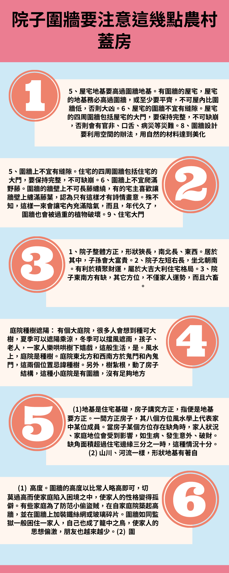 5、屋宅地基要過圍牆地基。有圍牆屋宅,屋宅地基過圍牆,或要,不可屋內比圍牆,否則。