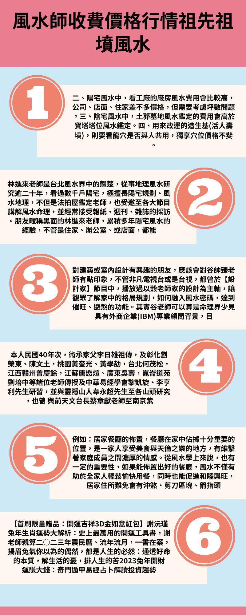 六、風水師實戰經驗、鑑定功力、名氣…因素,會讓風水師訂價有所不同。